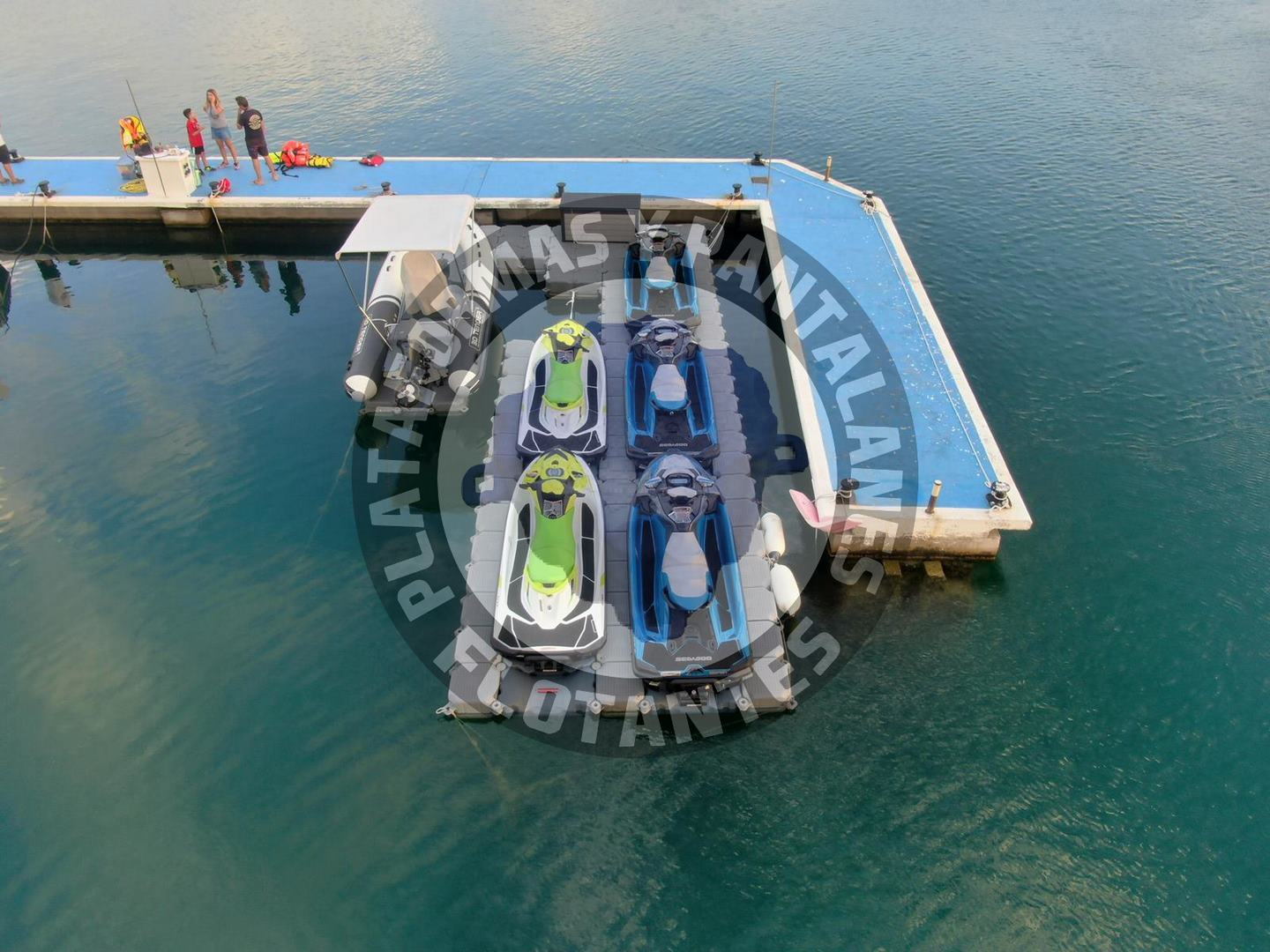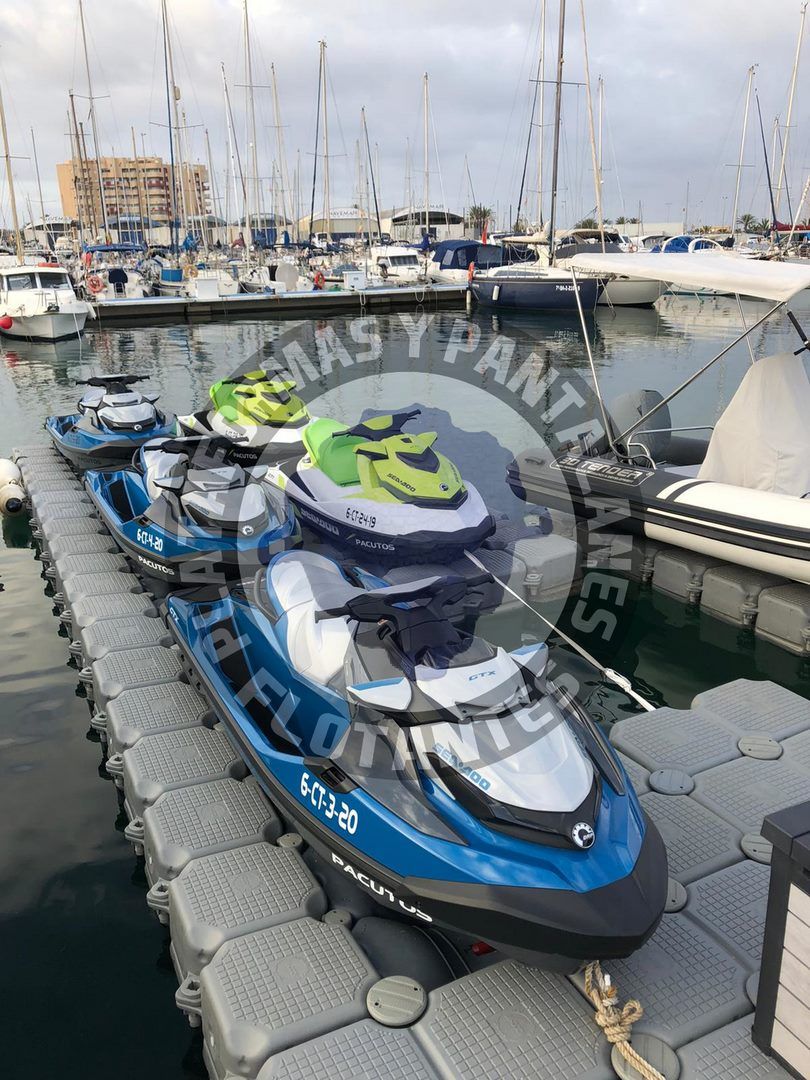 Plataformas flotantes para cinco motos de agua