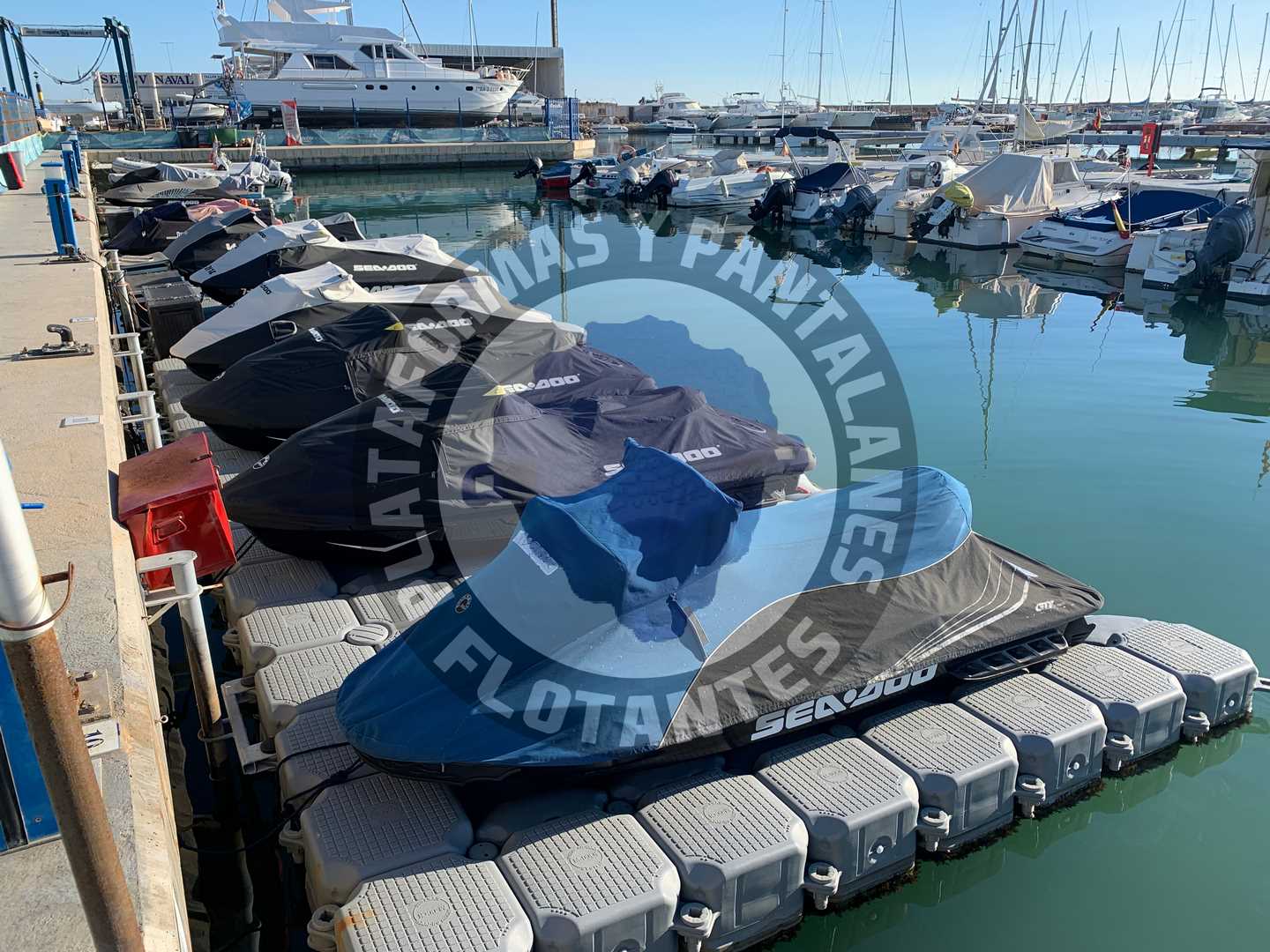 con capacidad para albergar hasta 9 motos de agua al mismo tiempo.
