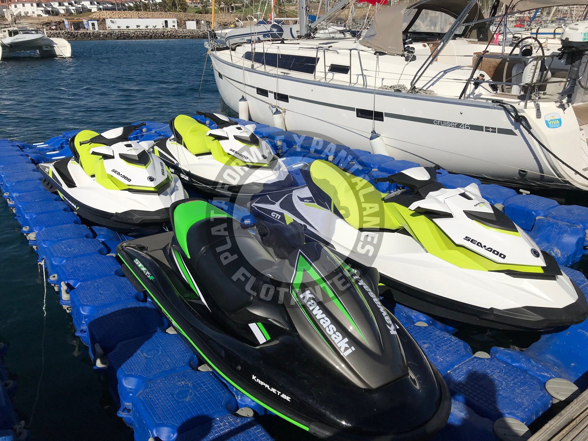 Plataformas flotantes para nueve motos de agua