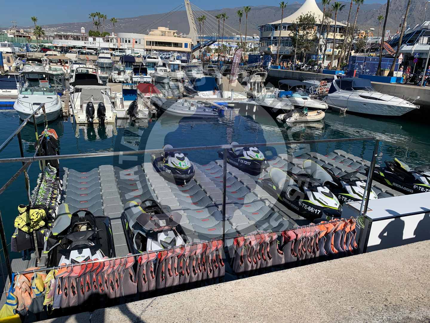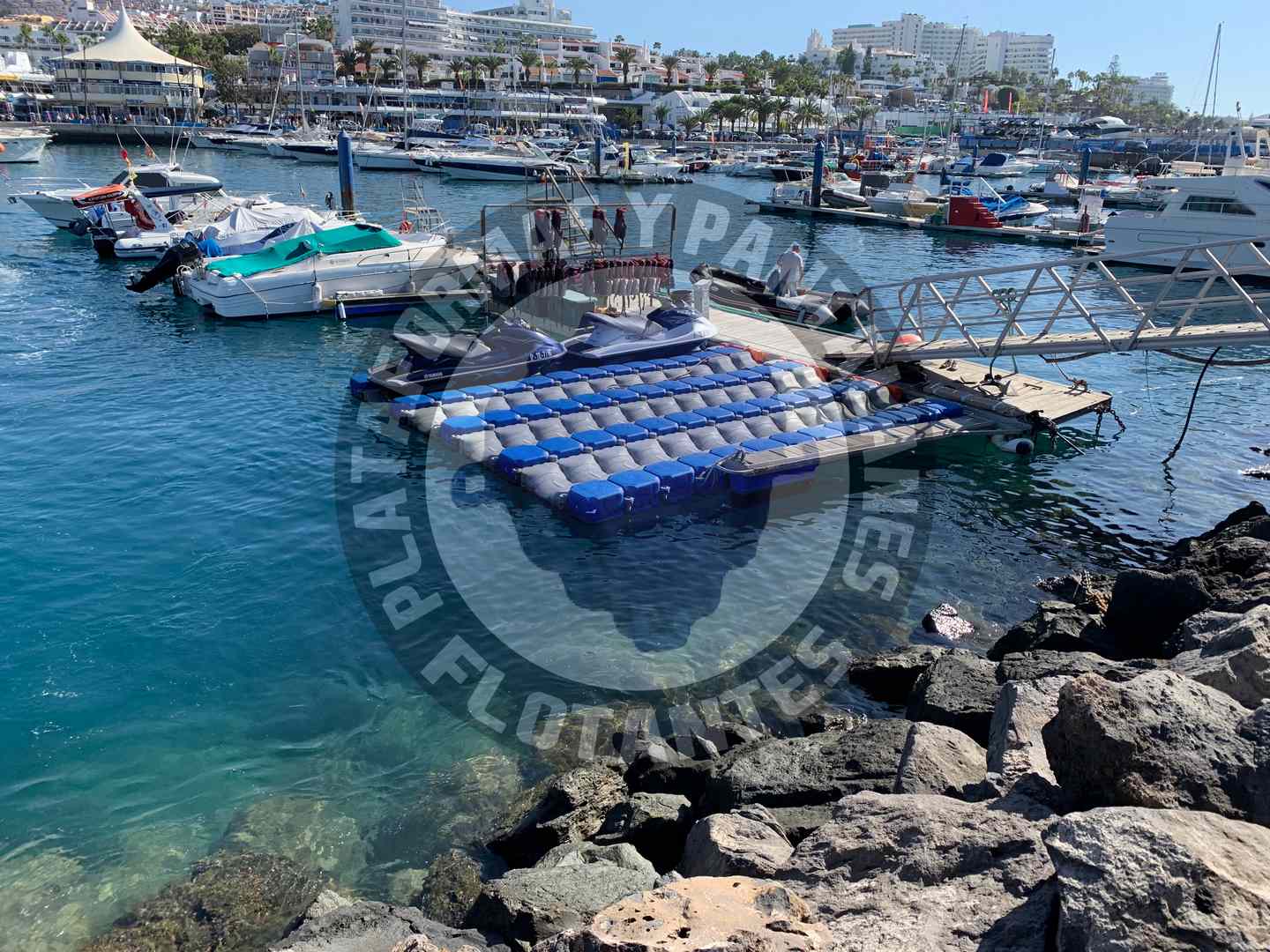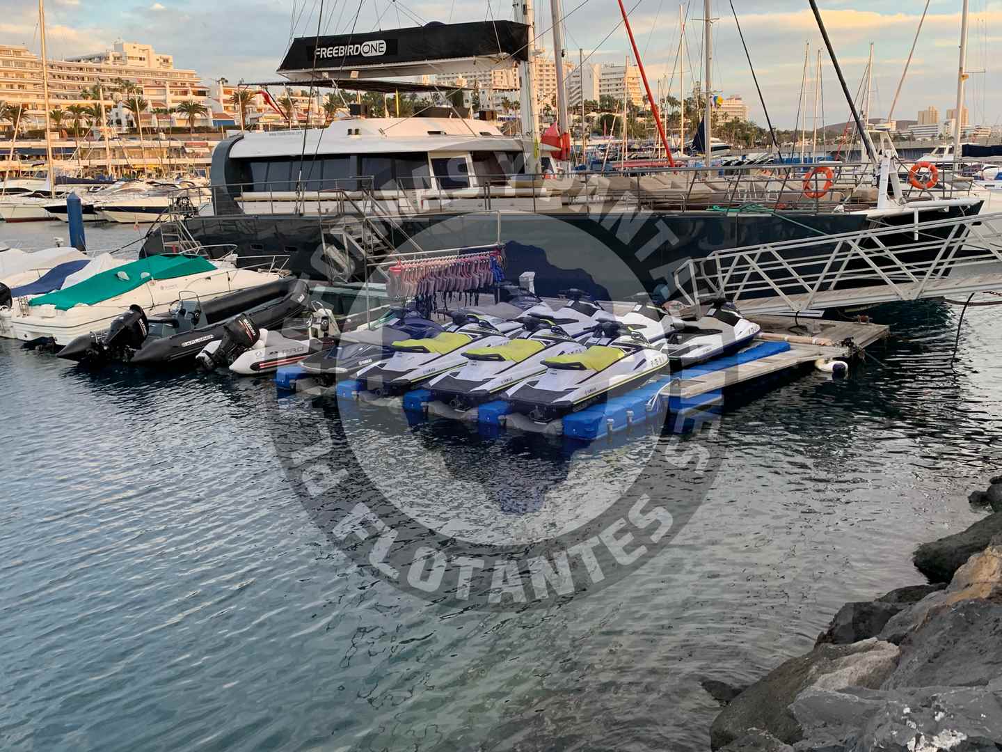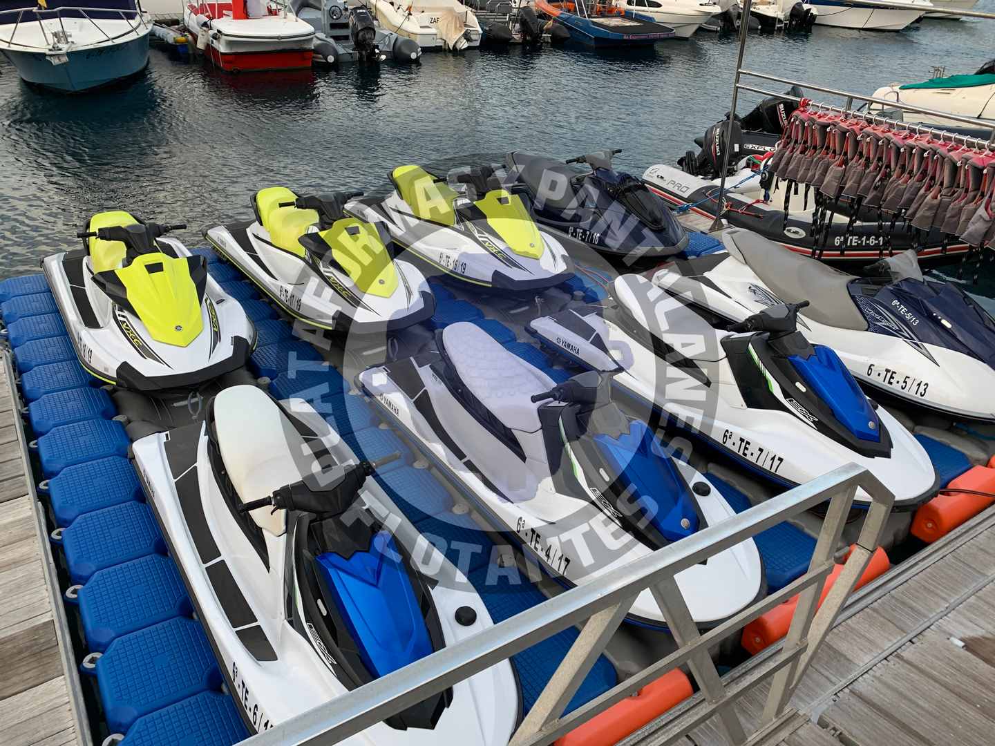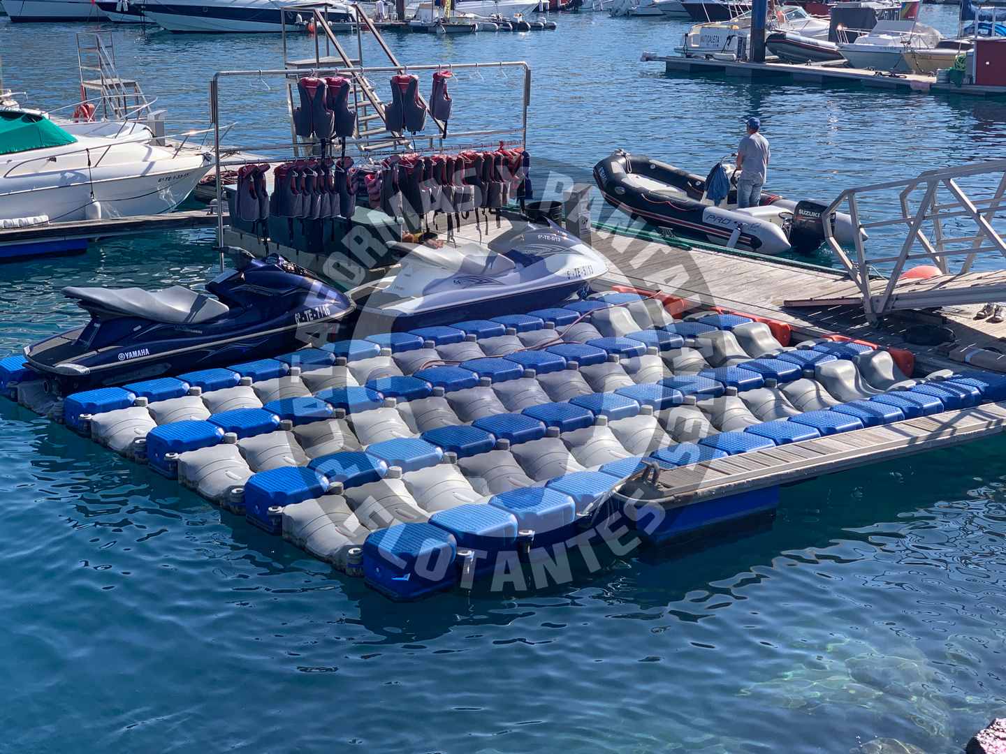 Plataformas flotantes para ocho motos de agua