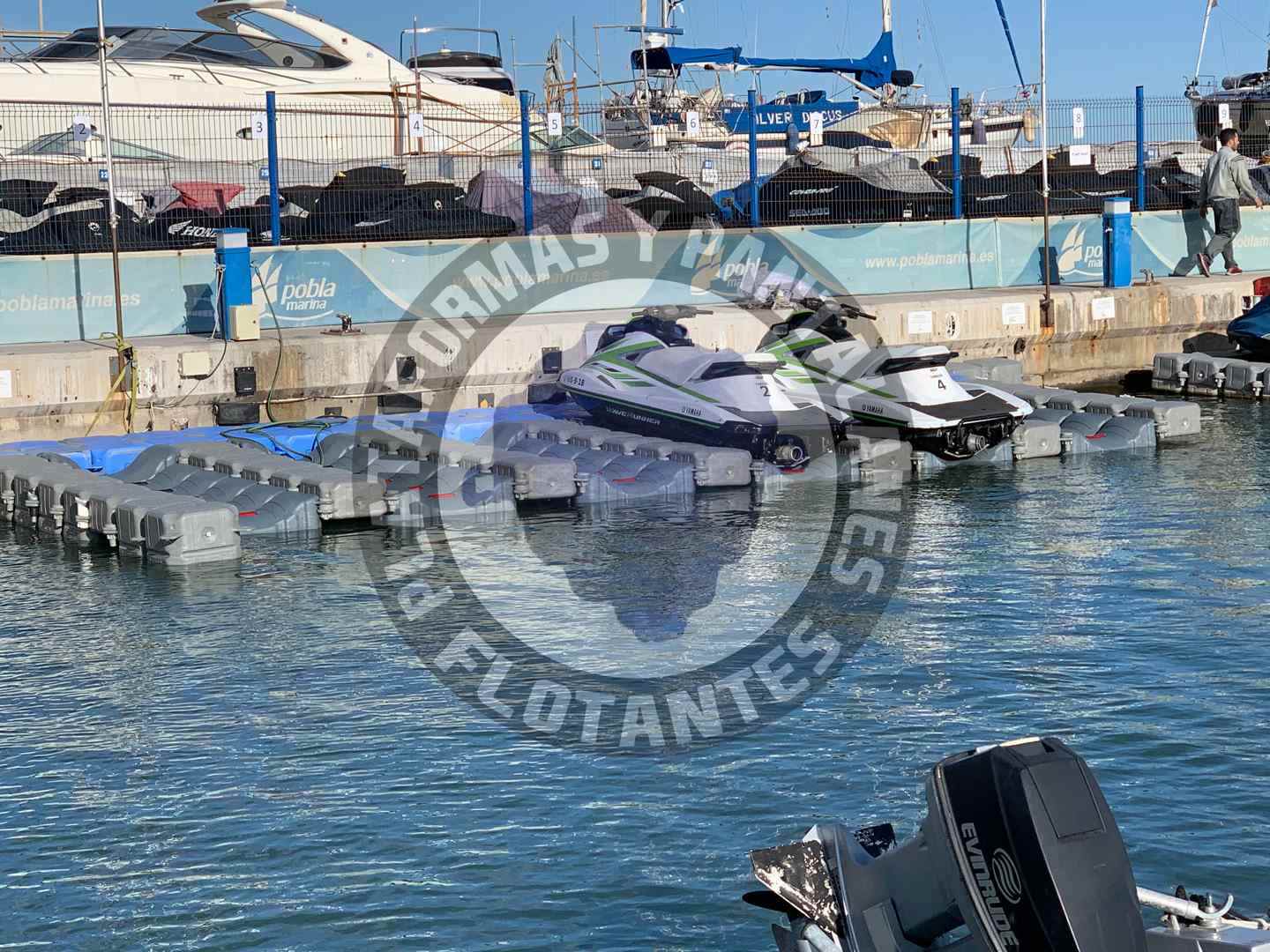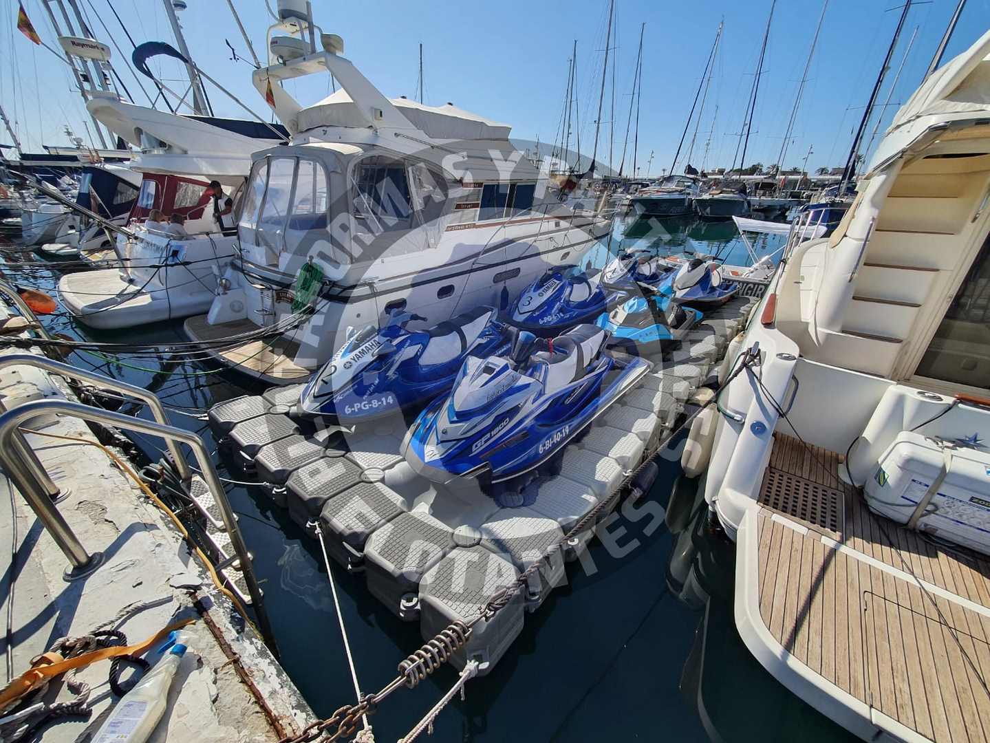 Montamos plataformas flutuantes para 6 motocicletas jetski, o que permite que os trabalhos de manutenção sejam realizados no mesmo local de atracação, podendo ser realizada com rapidez e facilidade a qualquer momento.