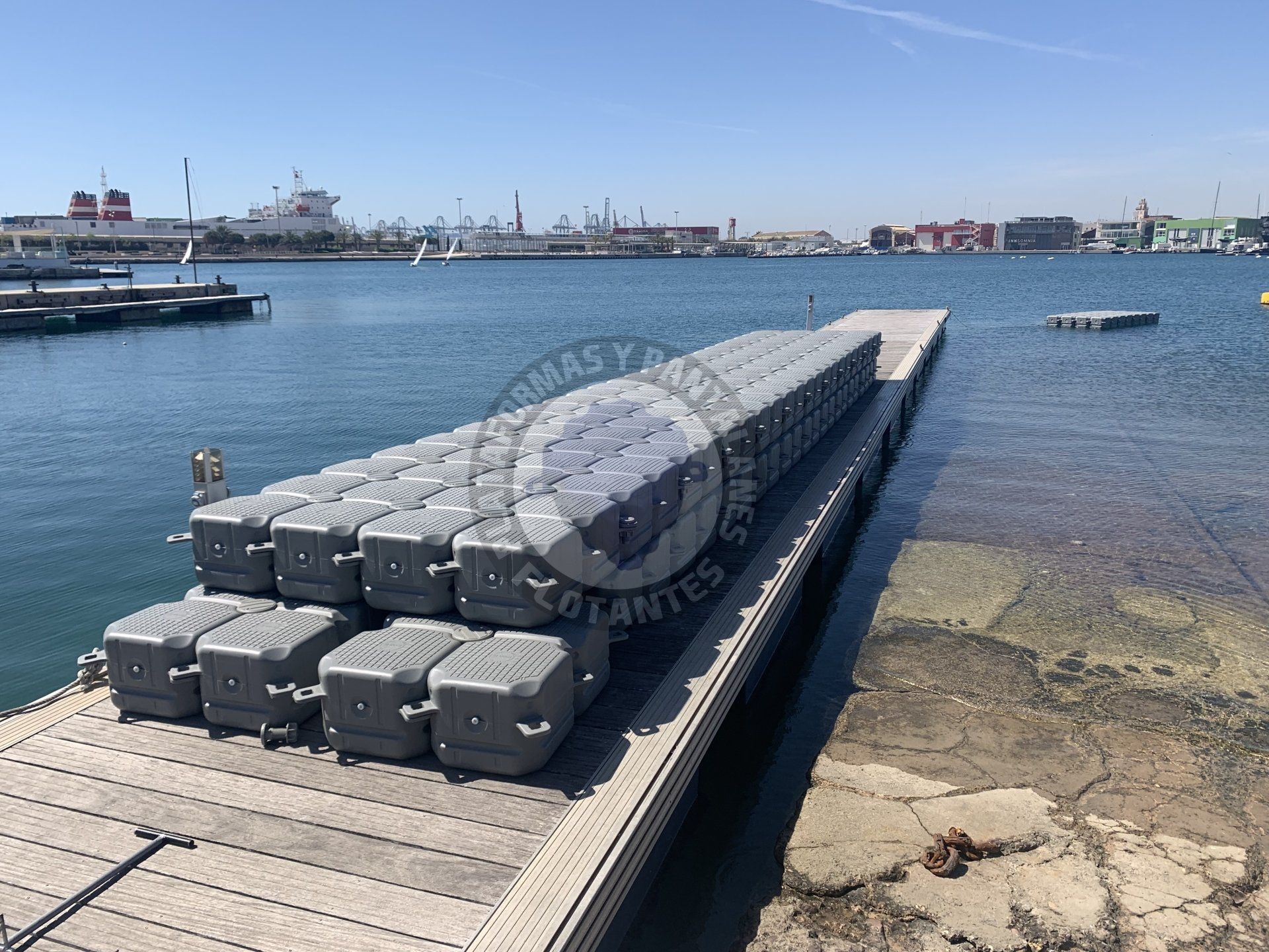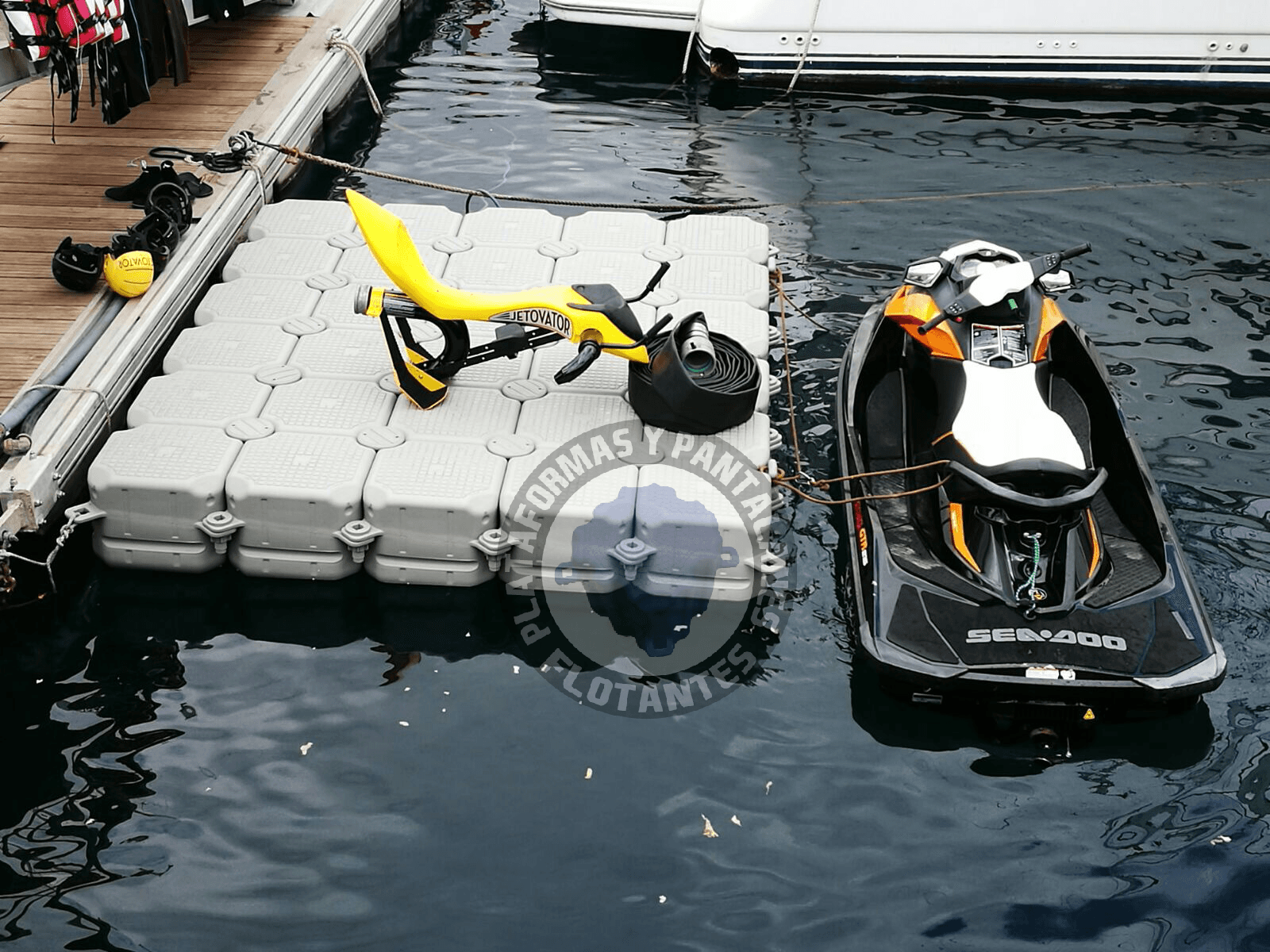 Os blocos da plataforma flutuante possuem grande flutuabilidade, com até 365 kg por metro quadrado. Sua construção com materiais de última geração confere-lhe, além da excelente flutuabilidade, grande resistência, segurança e durabilidade, com alguns 20 anos de vida útil.