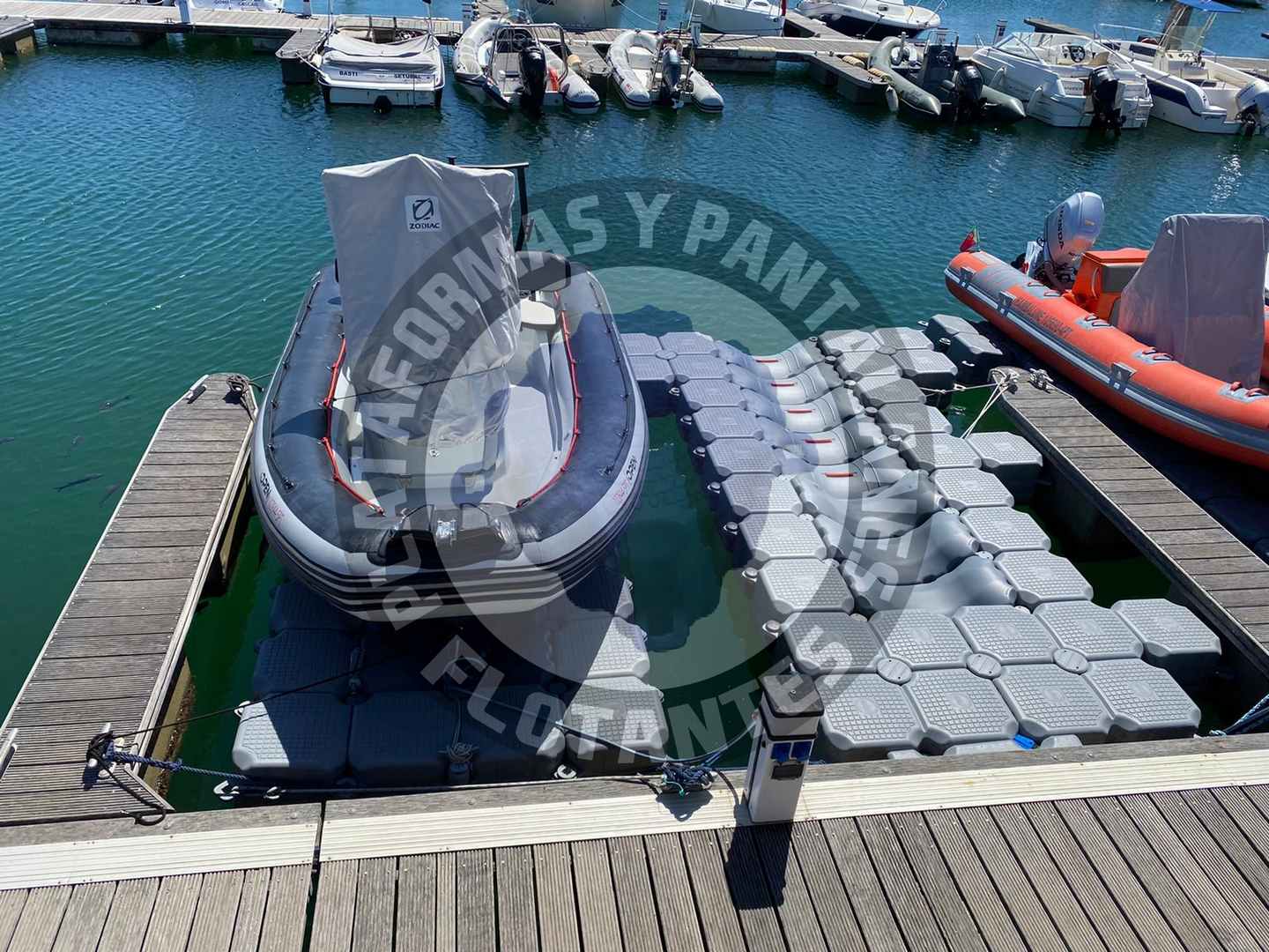 A tecnologia de blocos modulares para plataformas flutuantes permite a configuração de todos os tipos de instalações e projetos. Desenvolvemos todo o tipo de projectos para embarcações de 7 a 8 metros de comprimento, para uma ou mais embarcações.