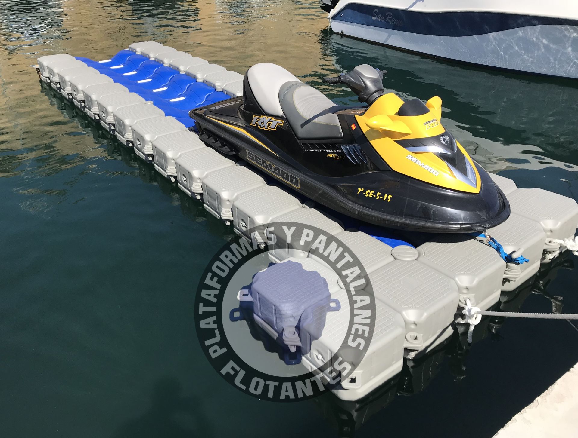 O sistema de doca flutuante de bloco modular facilita a atracação dos jet skis e reduz o desgaste e a erosão durante as manobras.