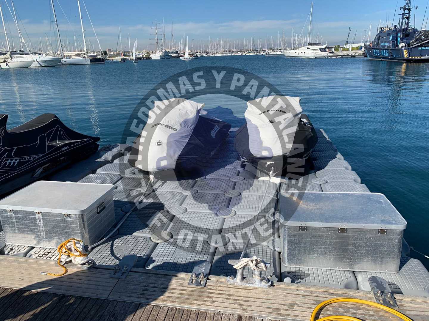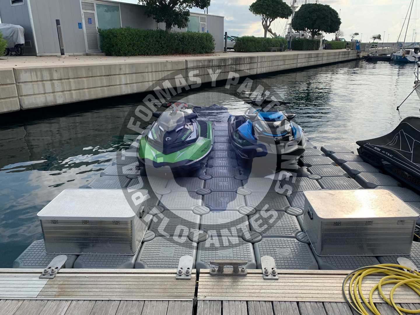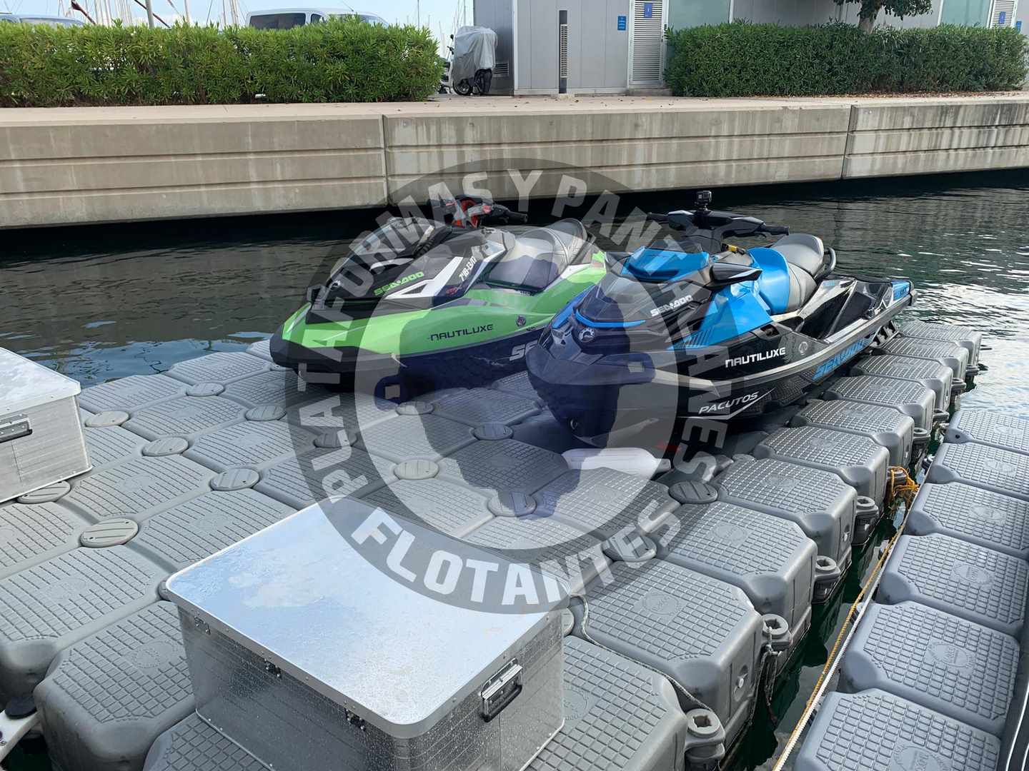 Instalação de plataformas flutuantes para dois jet ski jet skisem paralelo ou em fila para aproveitar ao máximo a amarração.