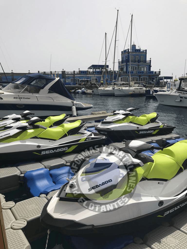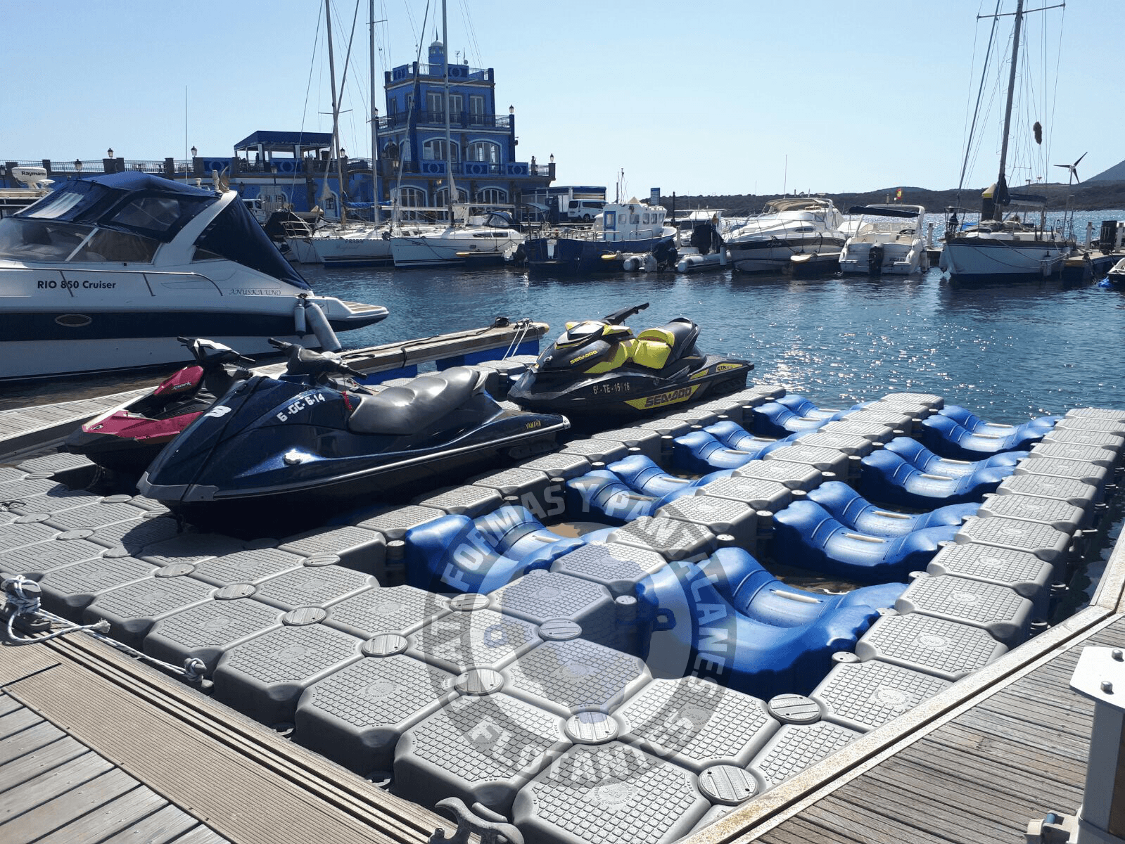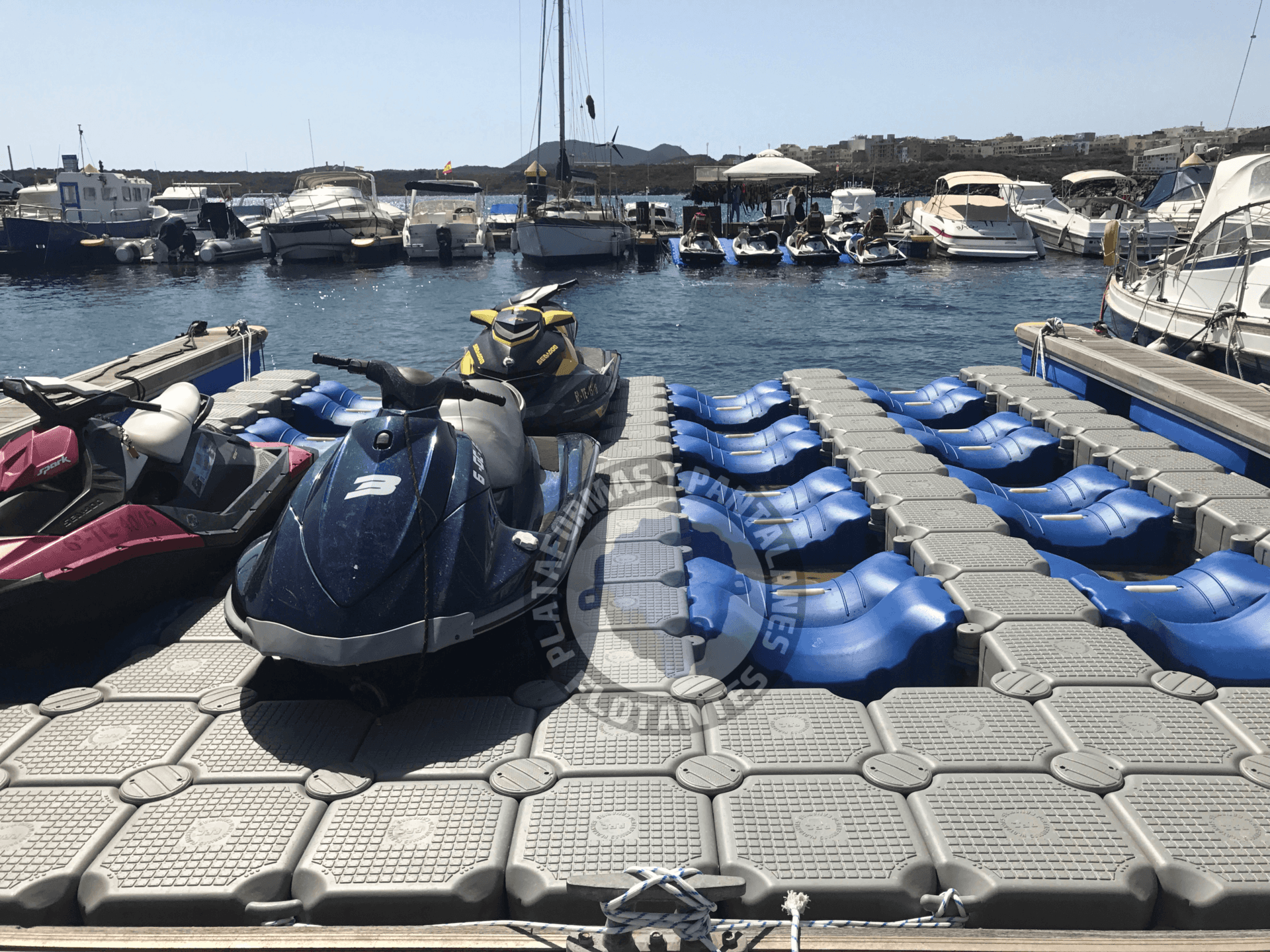 Essas plataformas flutuantes modulares para o gerenciamento e manutenção de até jet skis permitem armazenar até 8 motocicletas jetski simultaneamente.